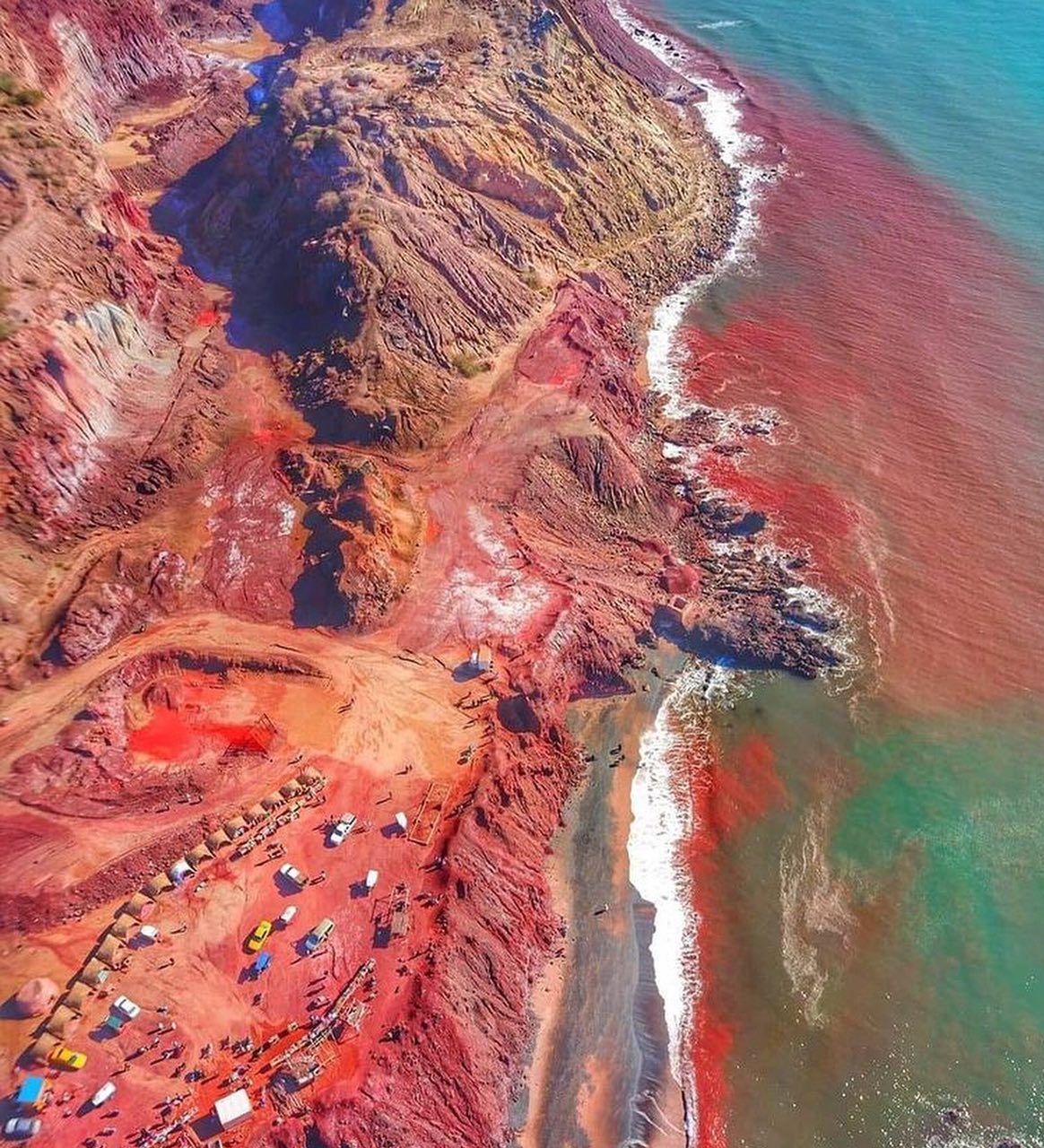 - هنگام تماس خاک با آب دریا، آب به رنگ صورتی و قرمز درمیآید.